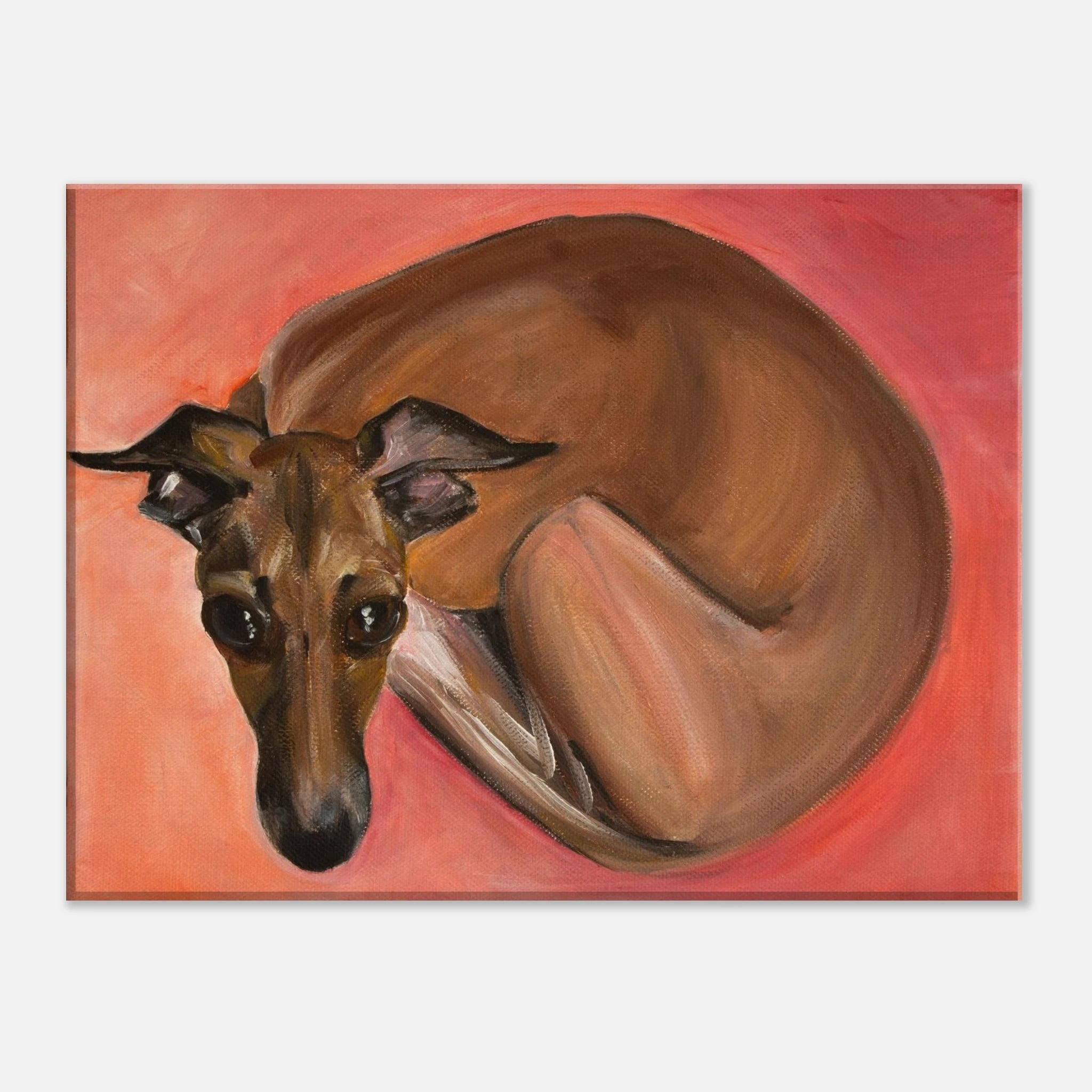 - Striking Emotional Focus: This expressive portrait of an Italian Greyhound captures the dog’s adorable, safe repose, gentle character, innocence, comfort, and unconditional love brought to life with bold brushstrokes and warm, earthy tones against a playful pink background. This print preserves the painterly texture and depth of the original acrylic work, making it a striking and heartwarming addition to any home.