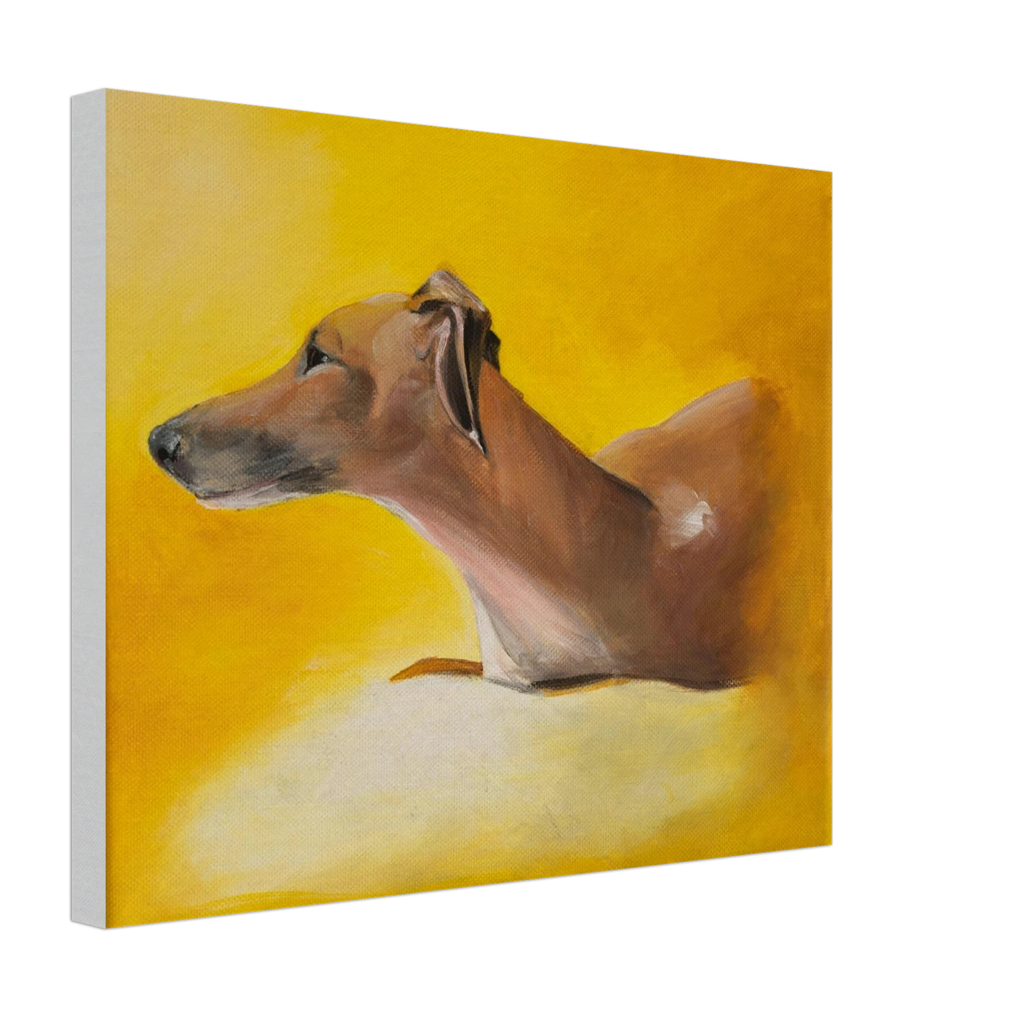 - Striking Emotional Focus: This vibrant portrait of an Italian Greyhound captures the breed’s graceful profile with expressive brushstrokes and warm, natural tones. Set against a radiant yellow background, the piece exudes energy and elegance. Printed on fine art canvas, it preserves the texture and depth of the original acrylic, bringing a gallery-quality touch to any space.