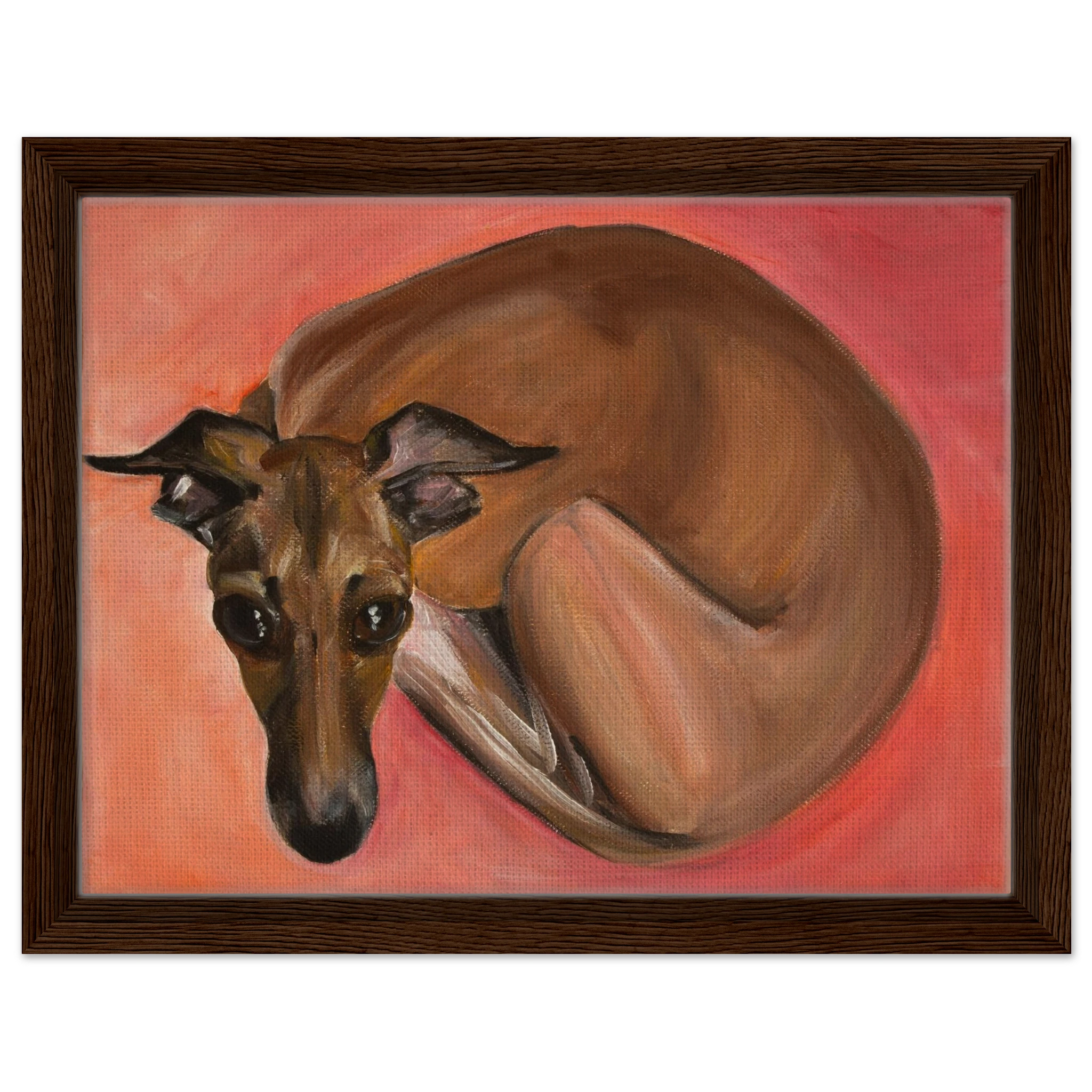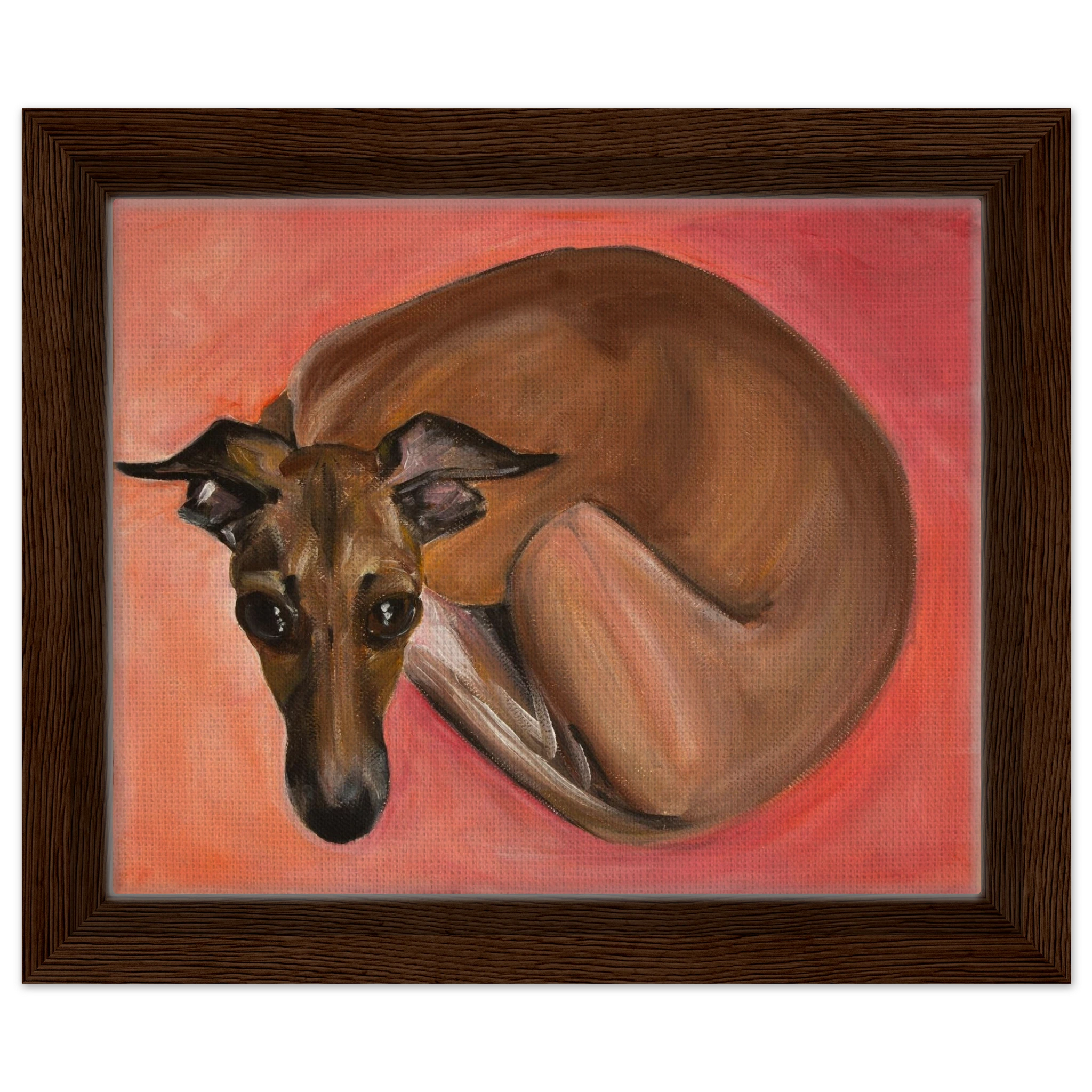 Celebrate the tender spirit and soulful gaze of the Italian Greyhound. Each framed canvas print in this collection captures the breed’s gentle grace and loving presence, brought to life with painterly texture and heartfelt emotion. Set within a refined wooden frame, it becomes a timeless tribute to loyalty, beauty, and the quiet connection between human and animal souls.
