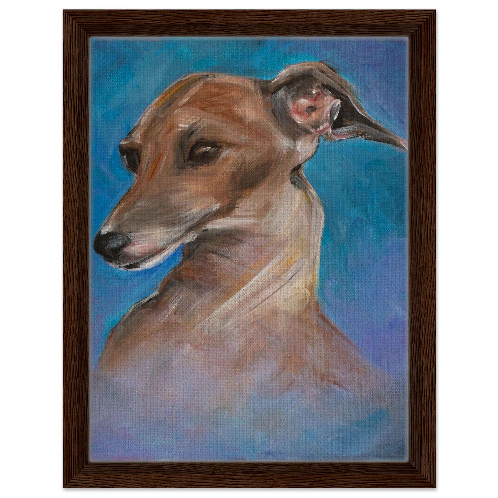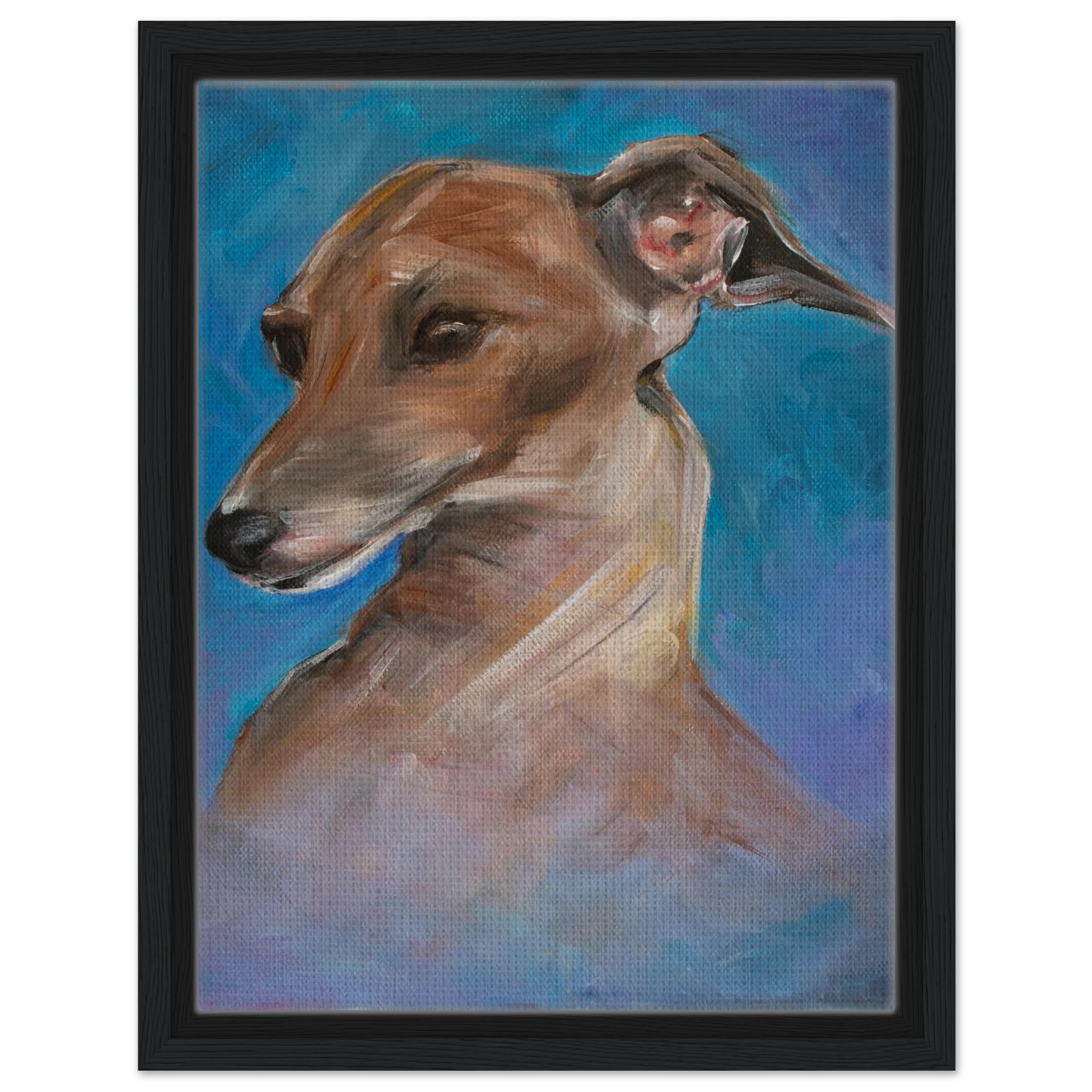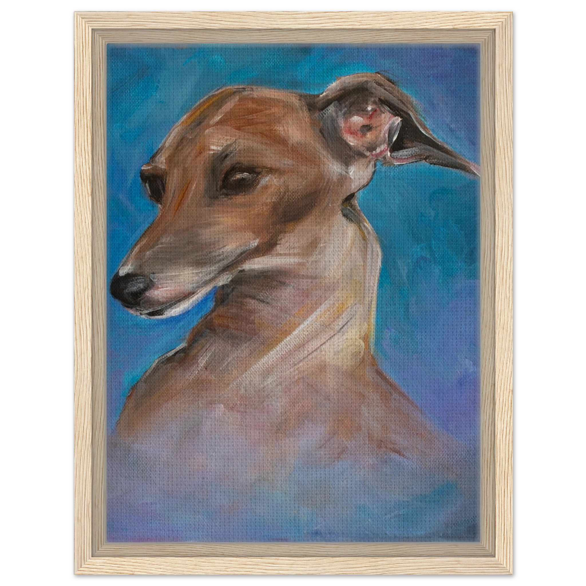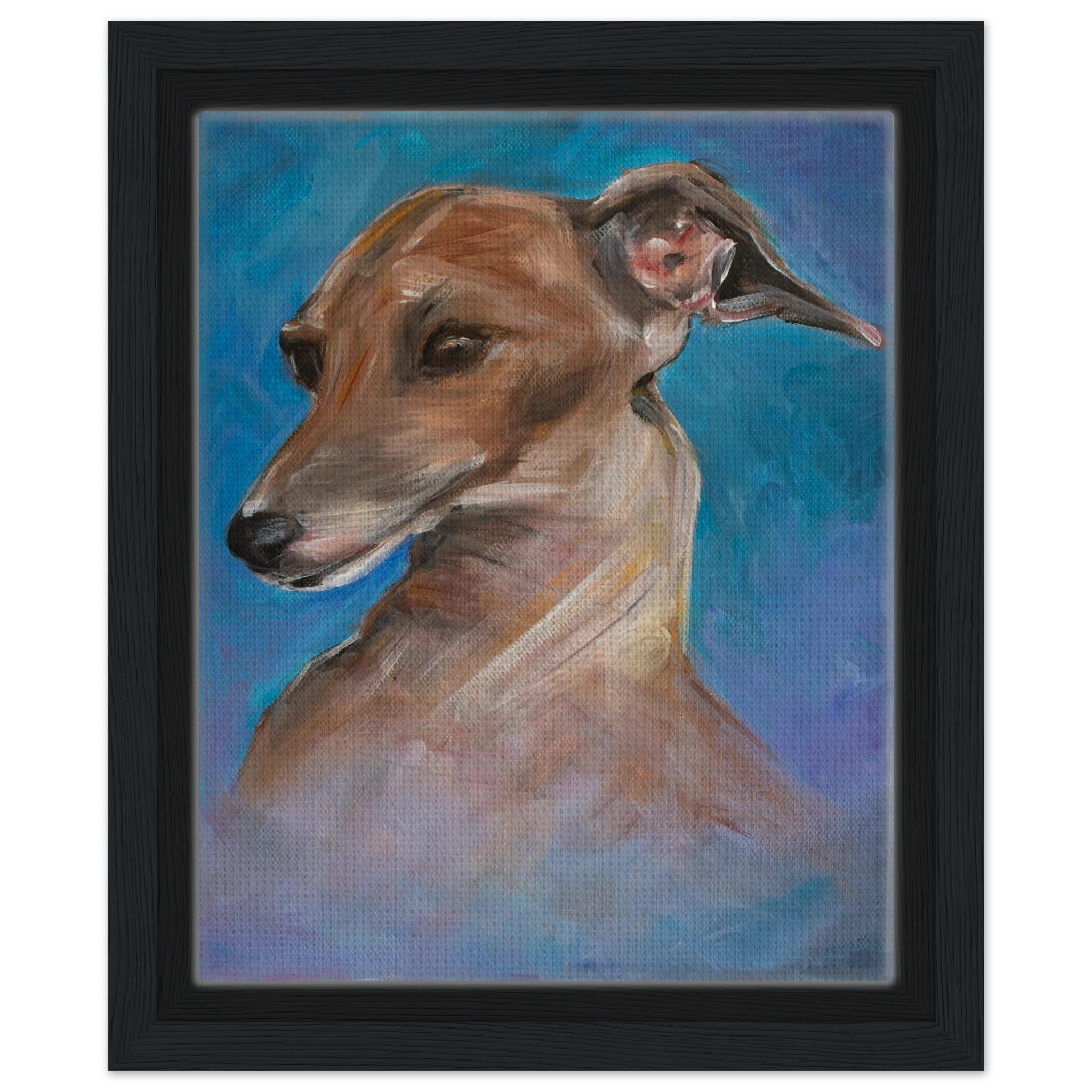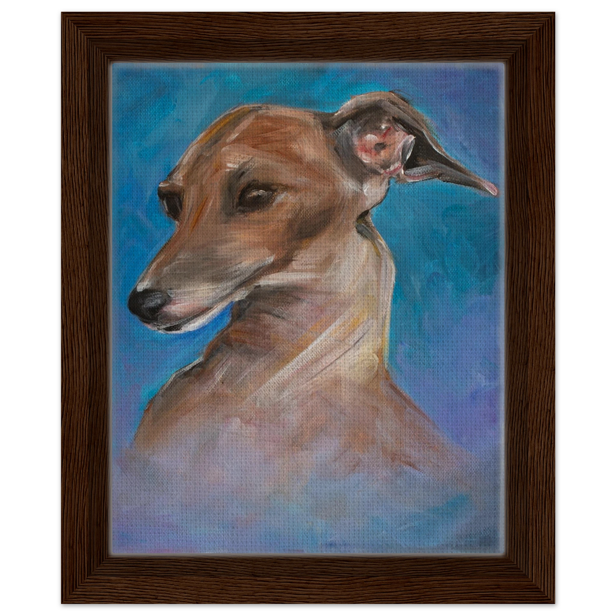 Celebrate the tender spirit and soulful gaze of the Italian Greyhound. Each framed canvas print in this collection captures the breed’s gentle grace and loving presence, brought to life with painterly texture and heartfelt emotion. Set within a refined wooden frame, it becomes a timeless tribute to loyalty, beauty, and the quiet connection between human and animal souls.
