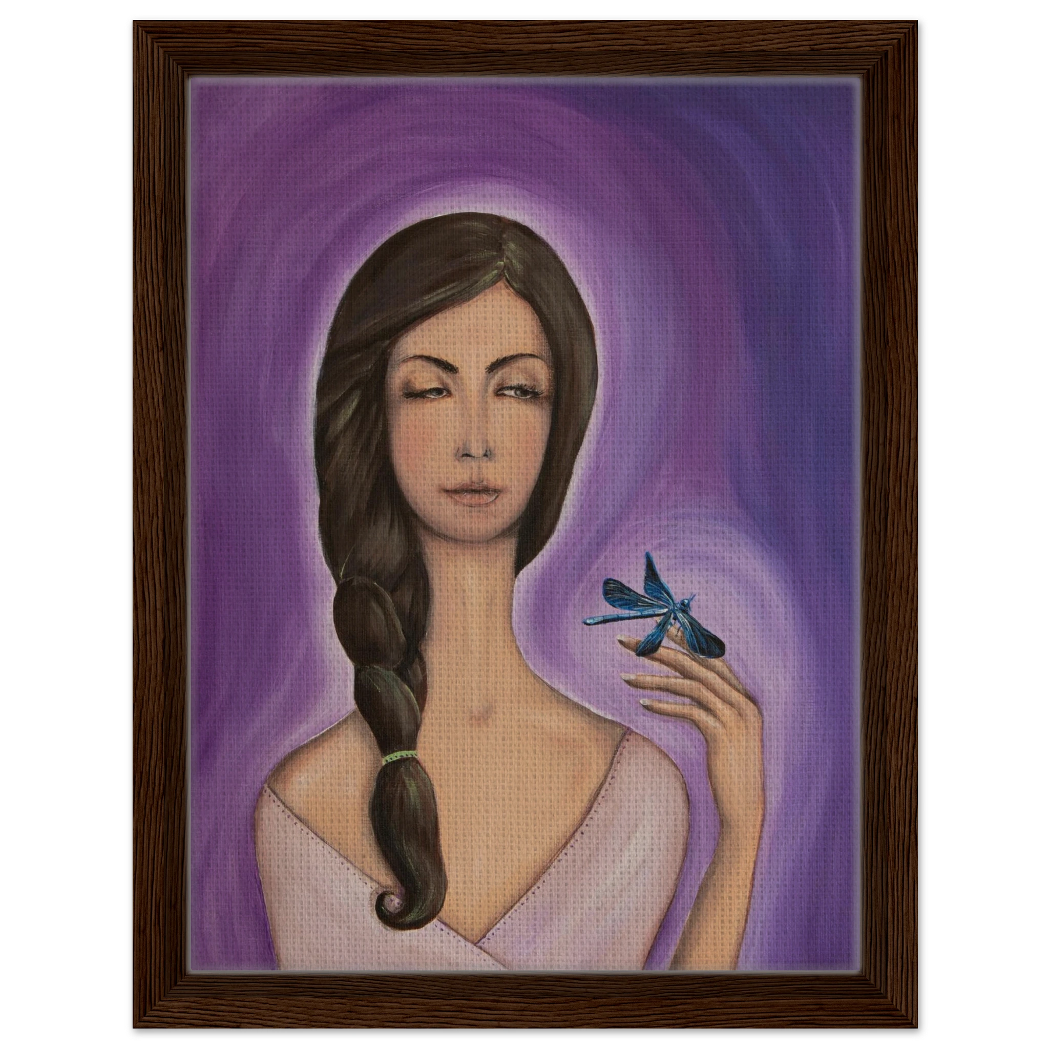 - Striking Emotional Focus: This print faithfully captures the vivid violet background and intricate detail of the dragonfly. Capturing a moment of serene introspection and quiet harmony with nature, it is perfect for those who are drawn to symbolism and grace.