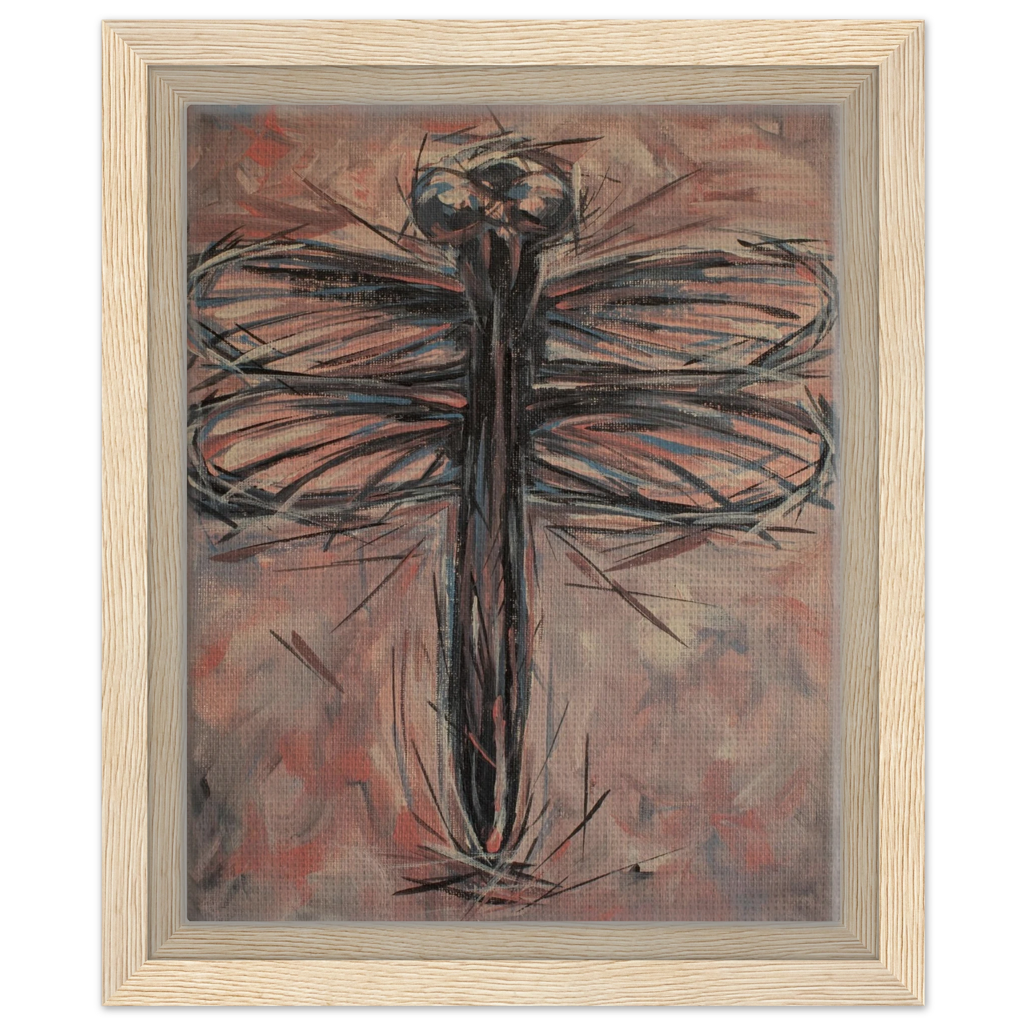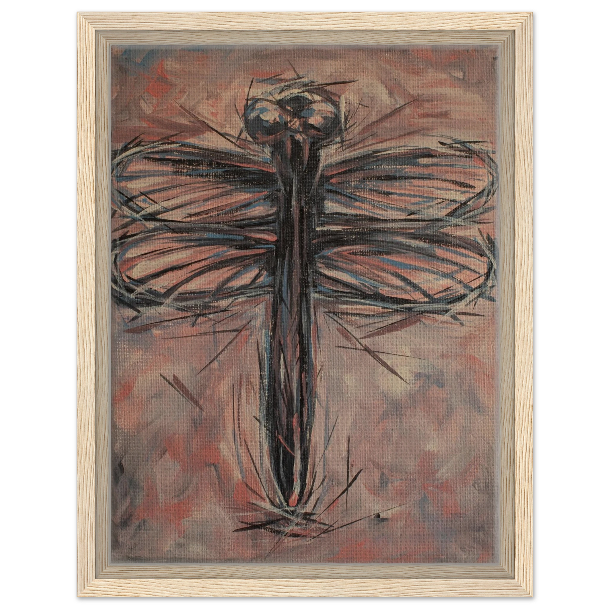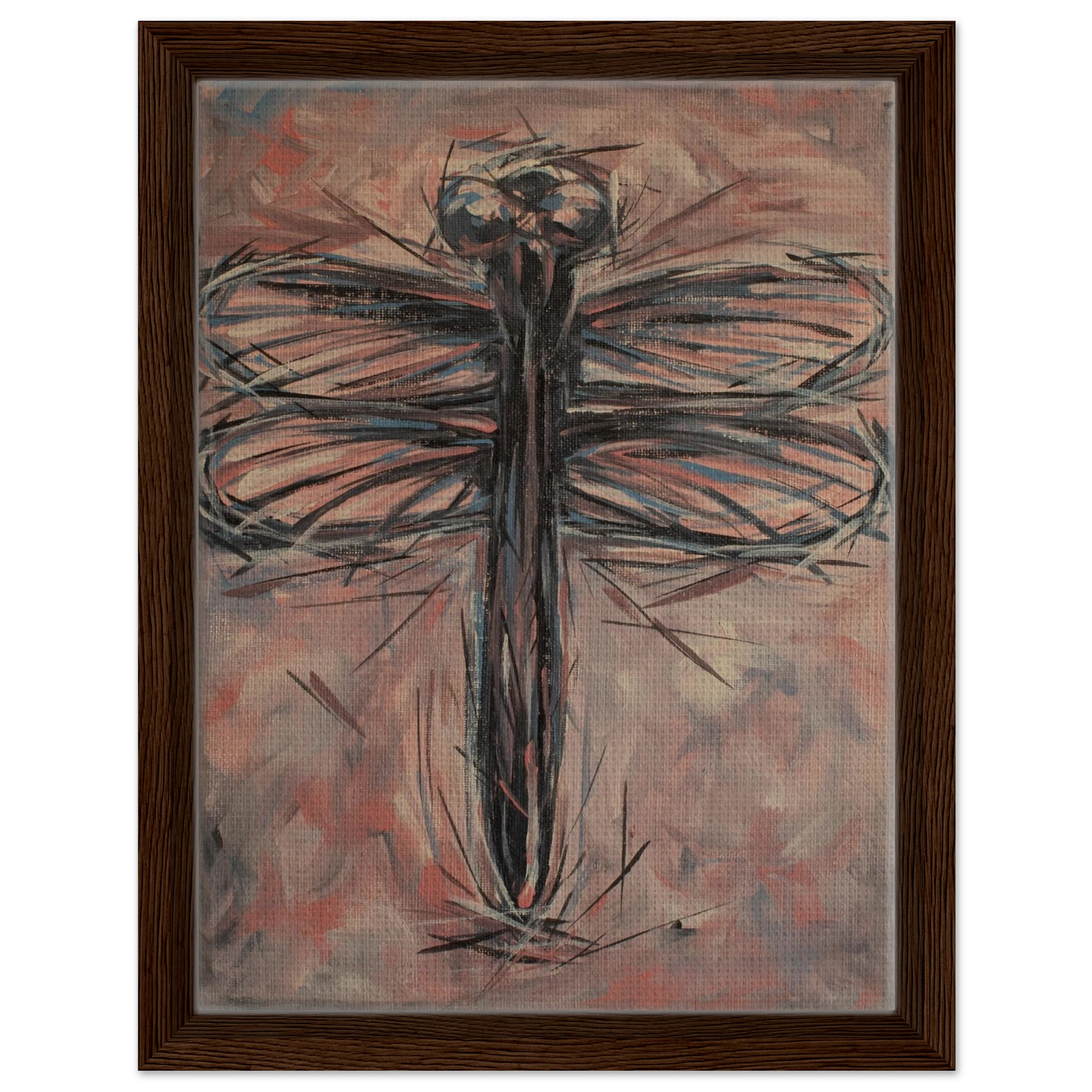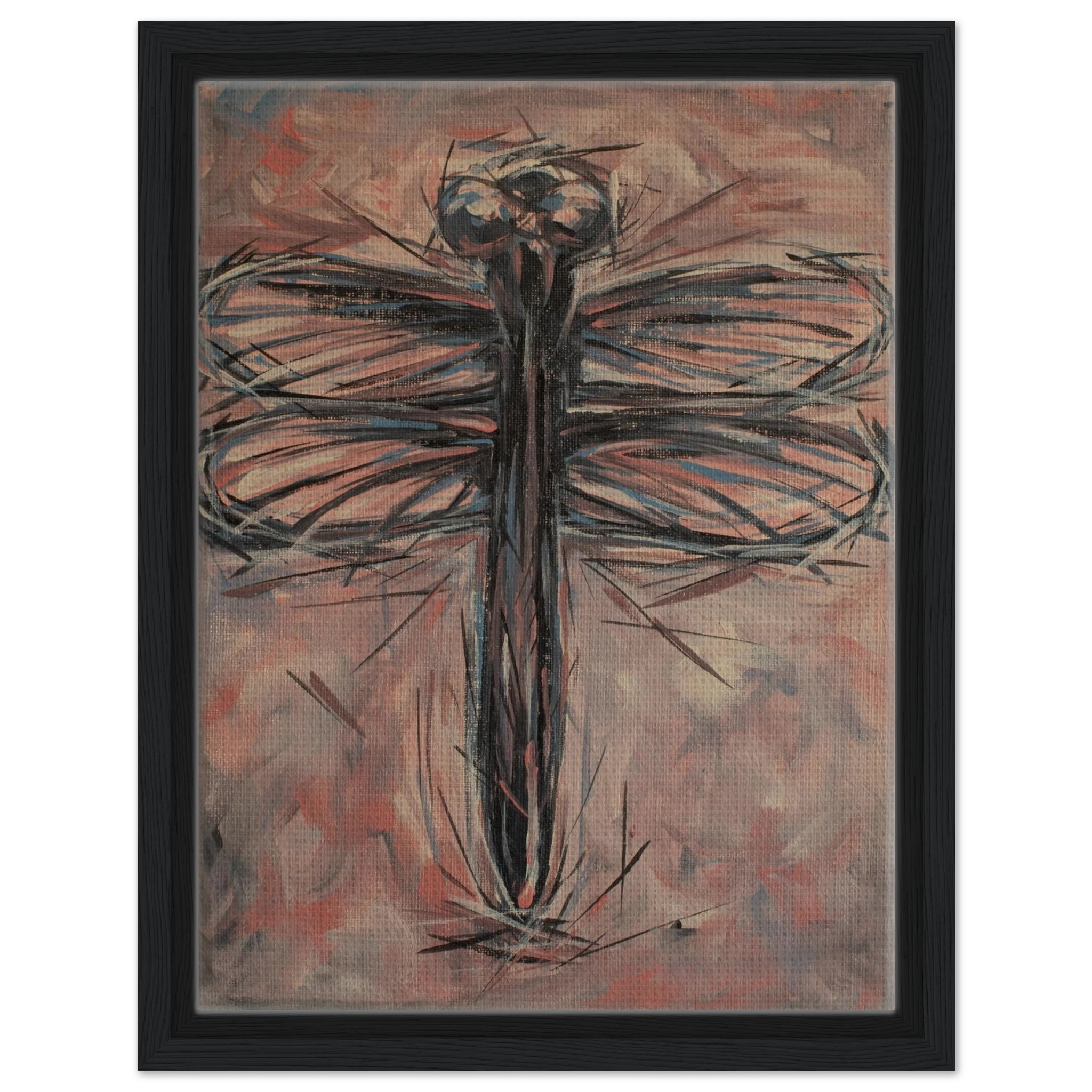 - Striking Emotional Focus: This abstract piece captures the dynamic essence of a dragonfly in flight through bold, expressive brushstrokes. Dark, swirling lines and touches of cool blue-grey suggest the creature's form, set against a soft, blush pink, and white background. The active brushwork evokes a sense of serene yet energetic movement, perfect for those who appreciate interpretive nature art and fluid compositions.