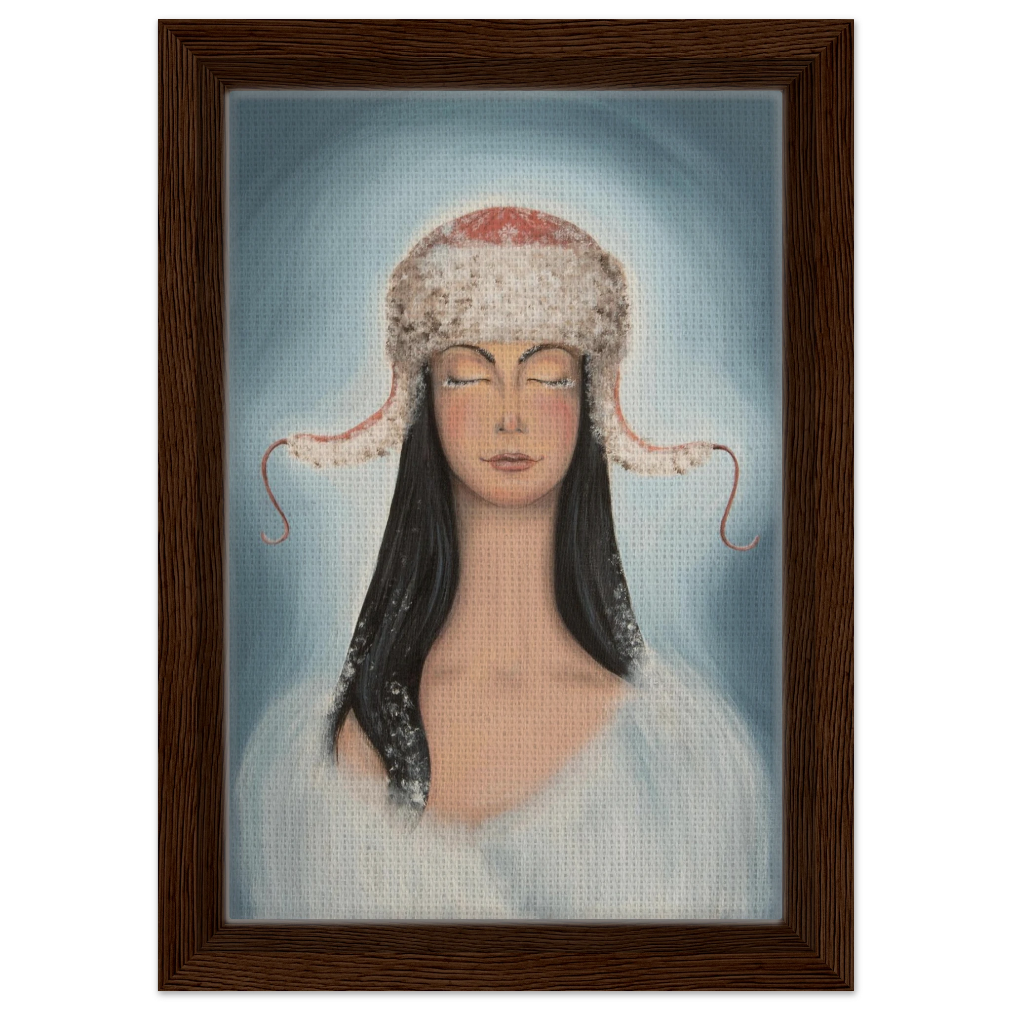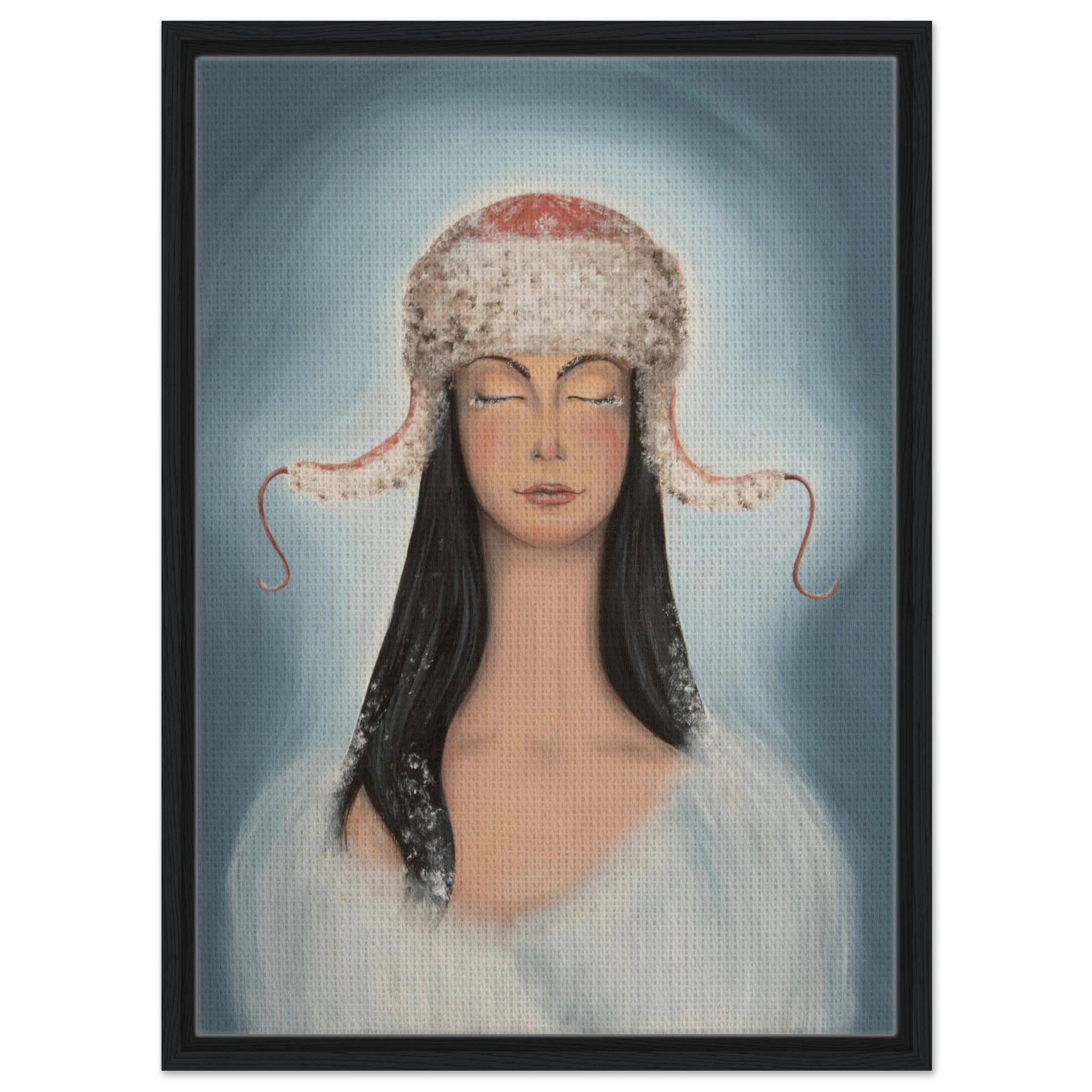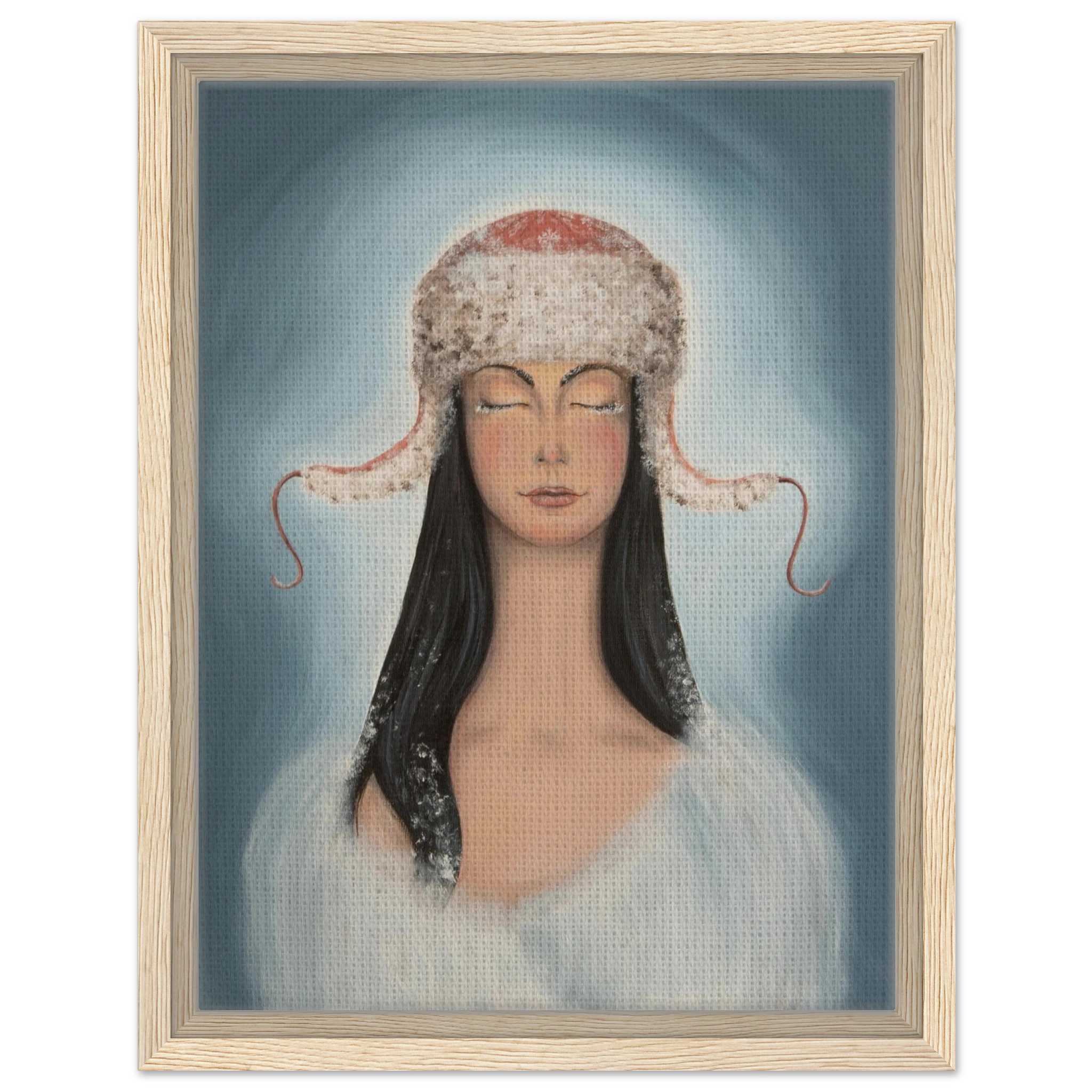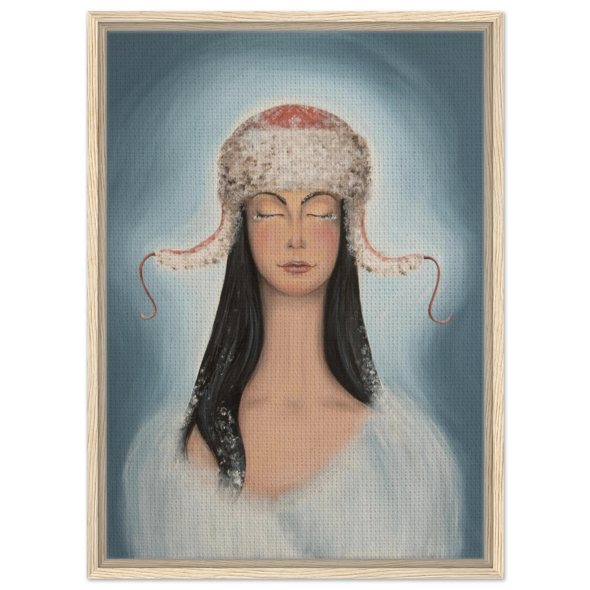 - Striking Emotional Focus: This expressive portrait captures the figure's serene composure and unique winter charm, brought to life with gentle brushstrokes and soft, snowy white tones against a calming, ethereal blue background. The intricate details of the fur-lined hat evoke a sense of mystique and warmth. Printed on fine art canvas, it preserves the painterly texture and depth of the original acrylic work, making it a striking and tranquil addition to any home.
