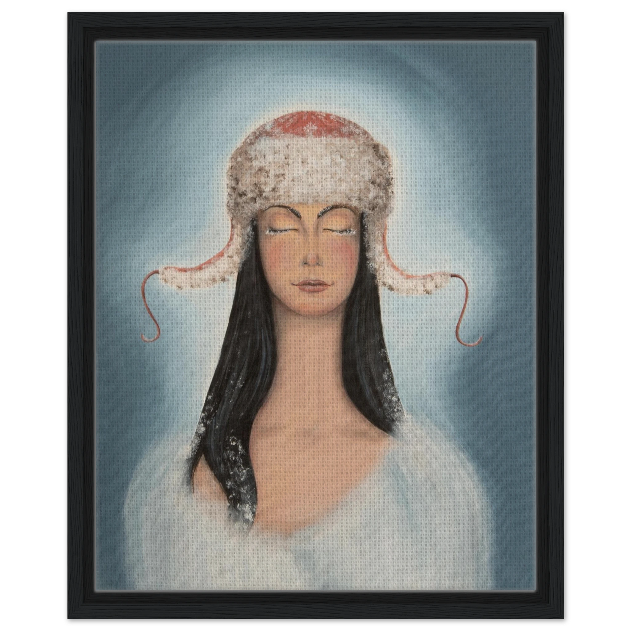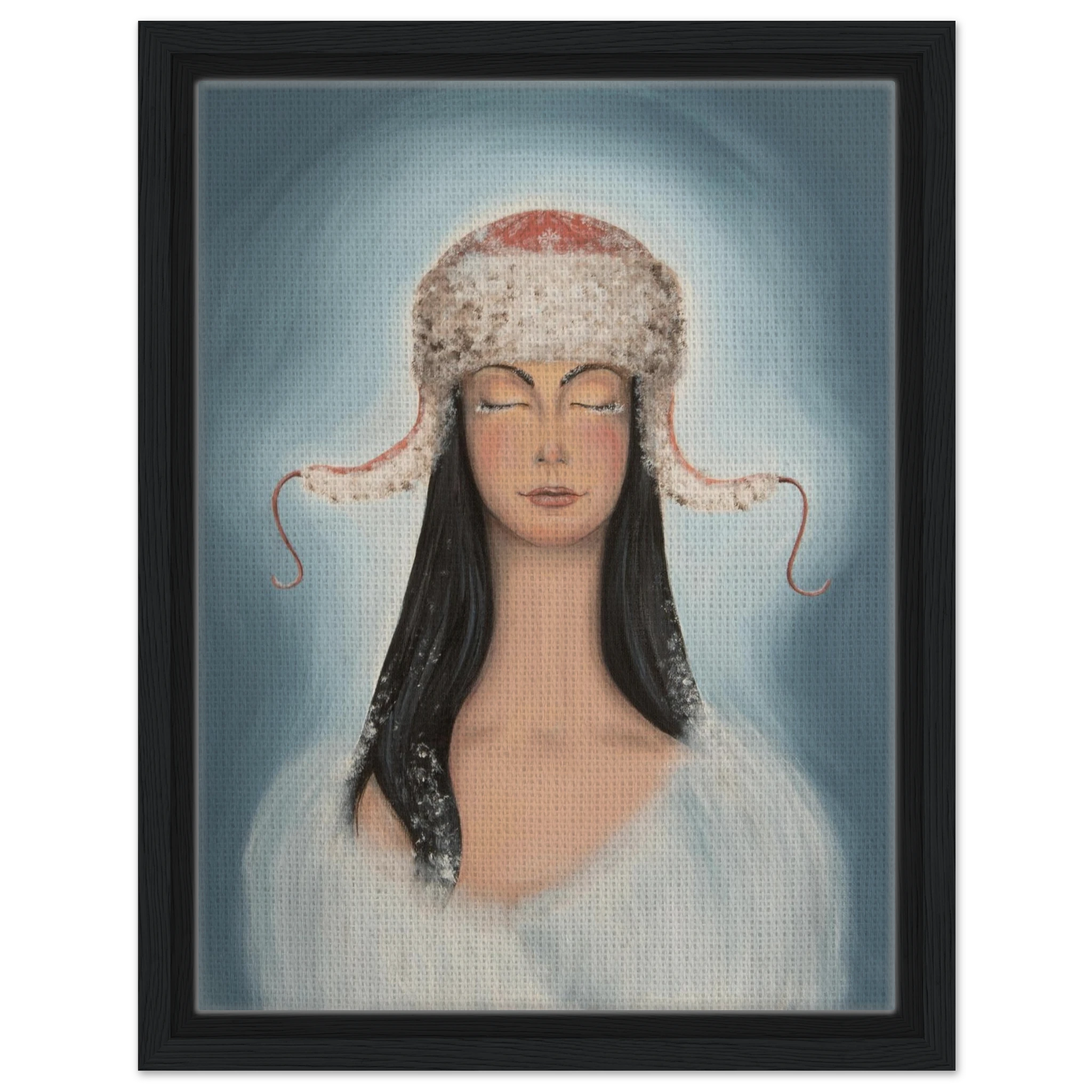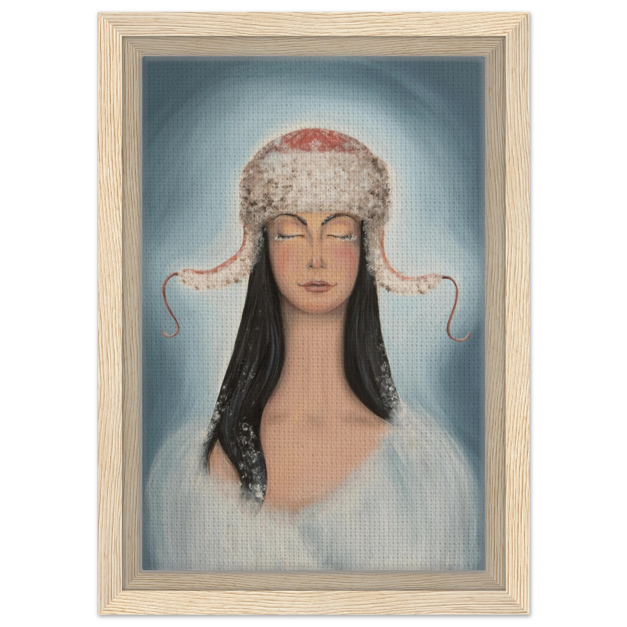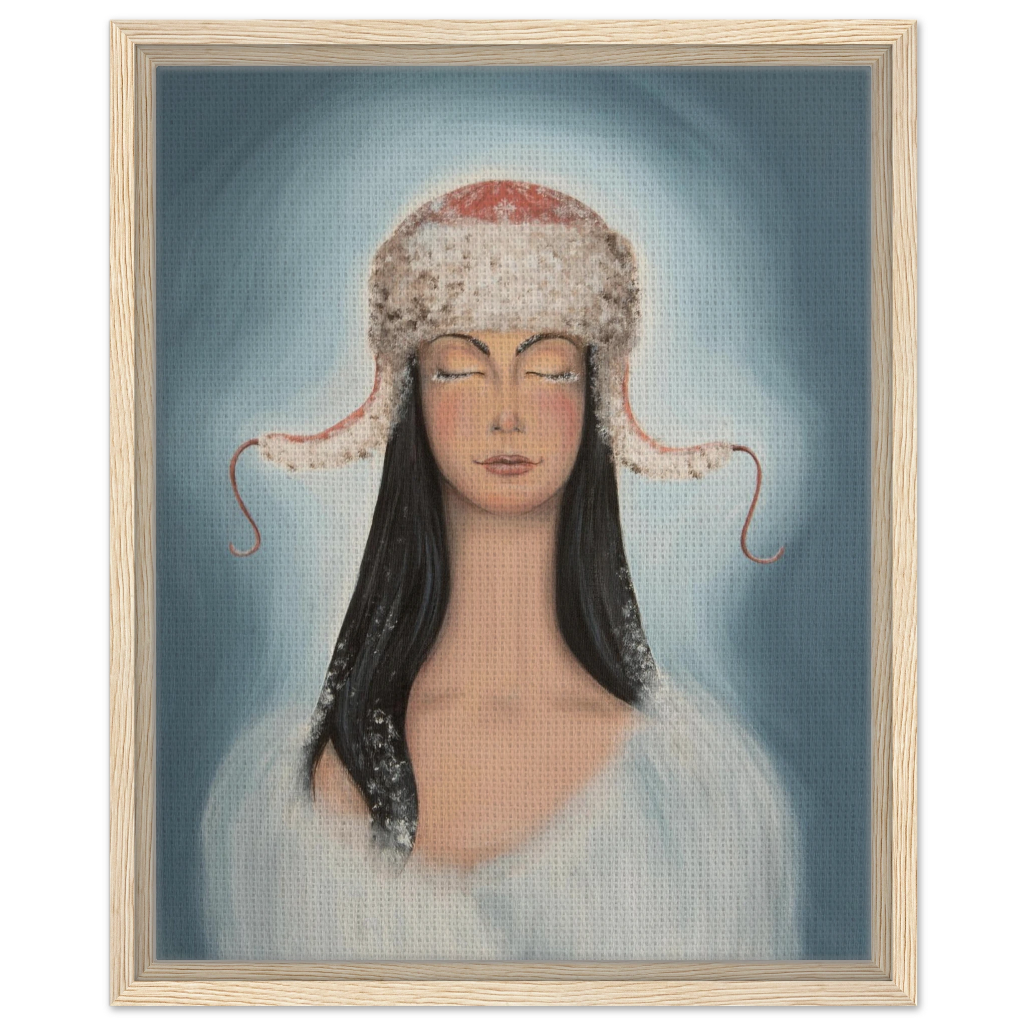 - Striking Emotional Focus: This expressive portrait captures the figure's serene composure and unique winter charm, brought to life with gentle brushstrokes and soft, snowy white tones against a calming, ethereal blue background. The intricate details of the fur-lined hat evoke a sense of mystique and warmth. Printed on fine art canvas, it preserves the painterly texture and depth of the original acrylic work, making it a striking and tranquil addition to any home.