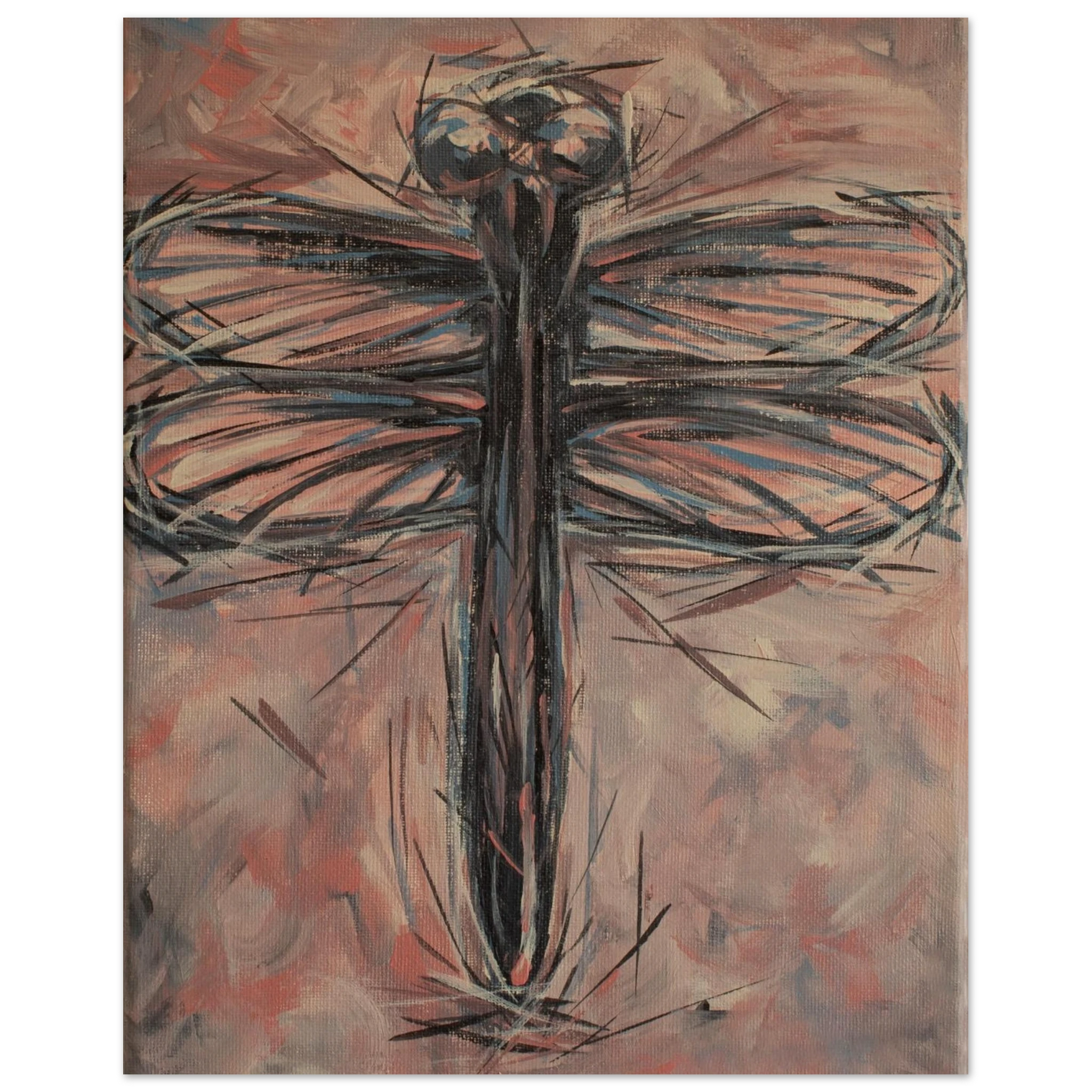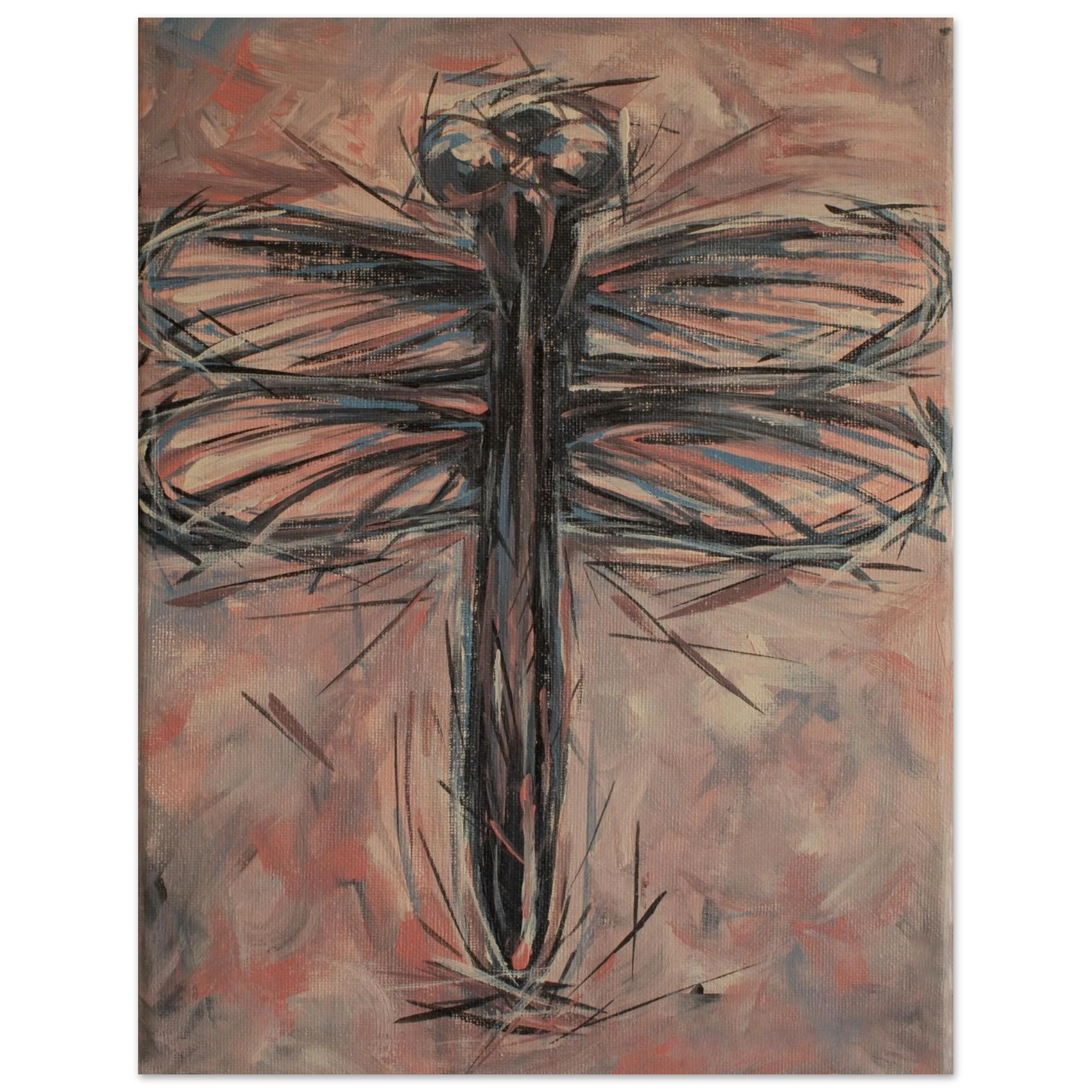 - Striking Emotional Focus: This abstract piece captures the dynamic essence of a dragonfly in flight through bold, expressive brushstrokes. Dark, swirling lines and touches of cool blue-grey suggest the creature's form, set against a soft, blush pink, and white background. The active brushwork evokes a sense of serene yet energetic movement, perfect for those who appreciate interpretive nature art and fluid compositions. Printed on a museum-quality matte paper, it preserves the painterly texture and depth of the original acrylic work, making it a striking and tranquil addition to any home.