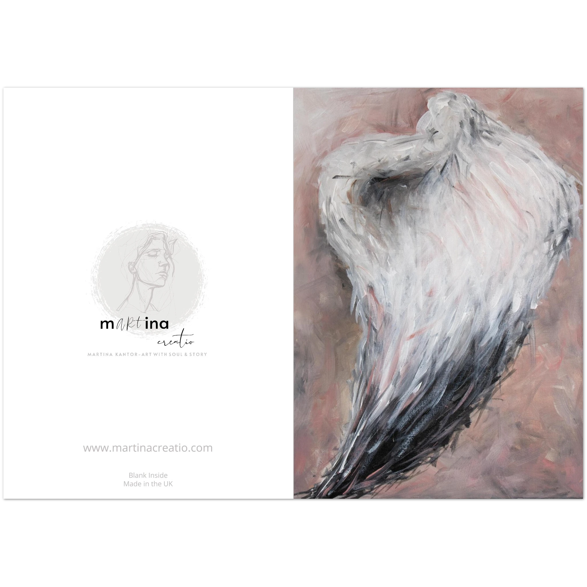- Miniature Fine Art: This isn’t your average postcard. It’s a high-quality print that captures the graceful sweep and powerful symbolism of angelic wings, brought to life with dynamic brushstrokes in soft whites, gentle greys, and subtle hints of deep earth tones against a warm, inviting background. It evokes a moment of serene inspiration and the enduring grace of the original “Whispers of the Angels” painting. It’s a beautiful, affordable way to own a piece of original art filled with profound feeling.