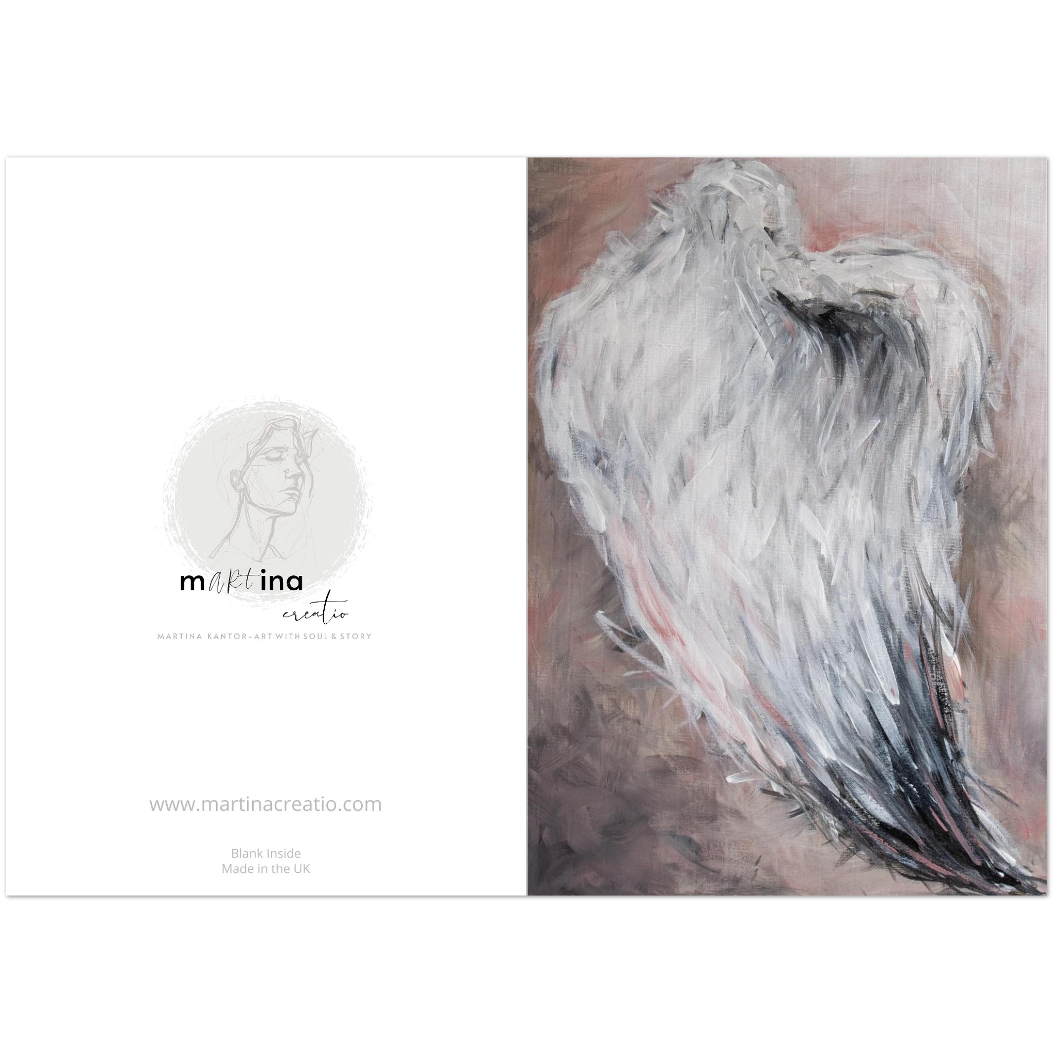 - Miniature Fine Art: This isn’t your average postcard. It’s a high-quality print that captures the graceful sweep and powerful symbolism of angelic wings, brought to life with dynamic brushstrokes in soft whites, gentle greys, and subtle hints of deep earth tones against a warm, inviting background. It evokes a moment of serene inspiration and the enduring grace of the original “Whispers of the Angels” painting. It’s a beautiful, affordable way to own a piece of original art filled with profound feeling.
